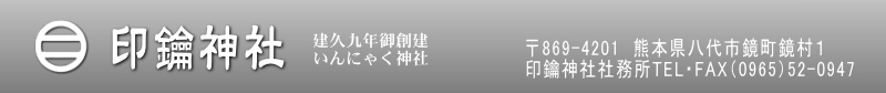 | ご質問・お問い合せ先 鏡町印鑰神社 〒869 - 4201 熊本県八代市鏡町鏡村1 電話・FAX ( 0965 ) 52 - 0947 Copyright(C) 印鑰神社 All Rights Reserved |